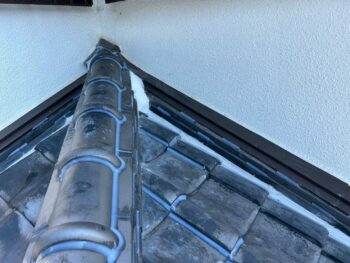谷樋は防水材を施工し、漆喰で隙間を埋めています。