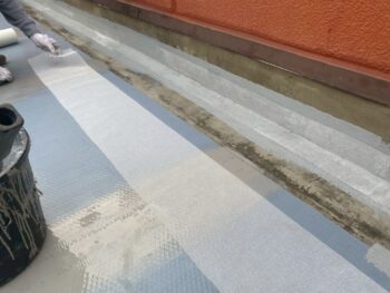 端部・立ち上がり・溝に補強クロスを張り、目止め処理を実施。
