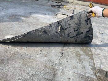 まずは塩ビシート、古くなったウレタン防水を撤去。