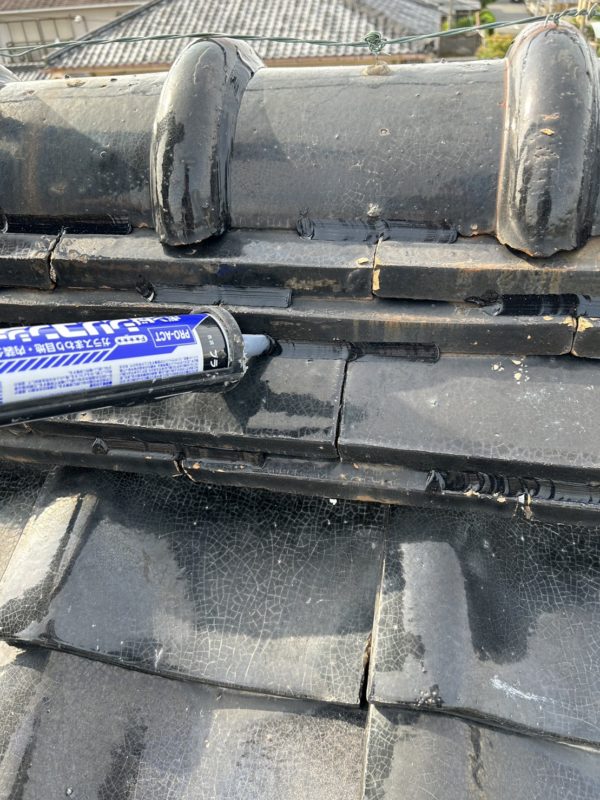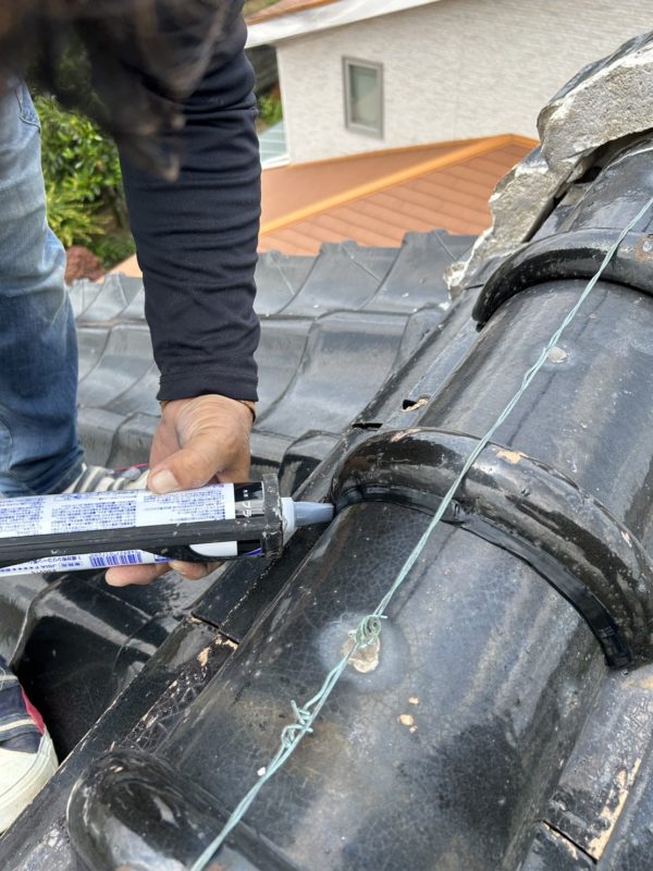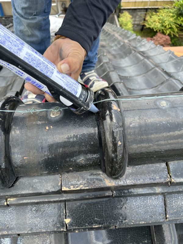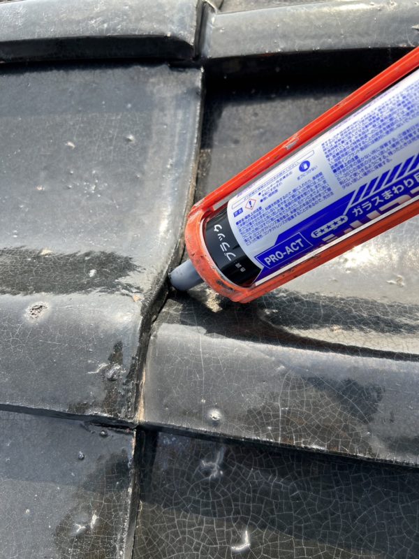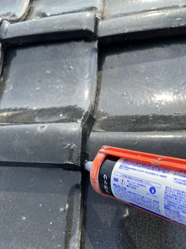 瓦の隙間に、シーリング剤を充填します。