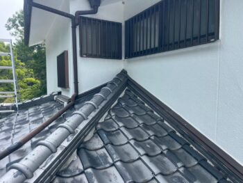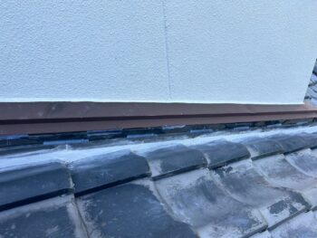 谷樋は防水材を施工し、漆喰で隙間を埋めています。